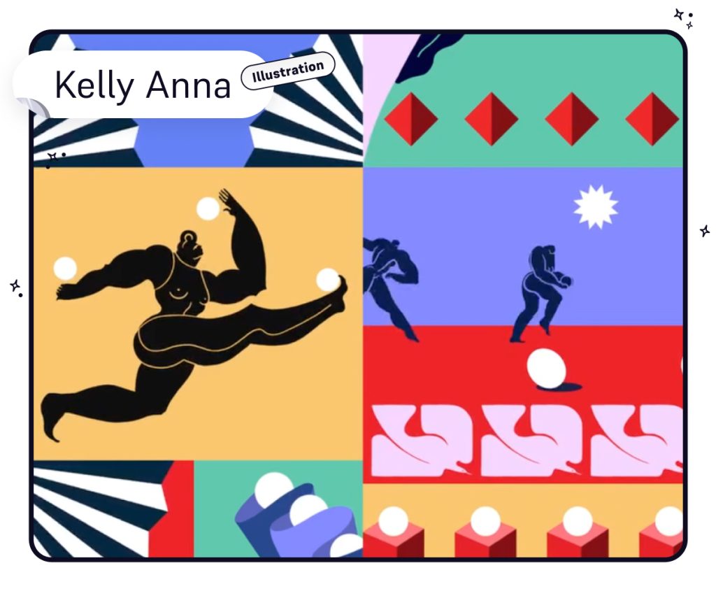 Artiste londonienne, Kelly Anna célèbre les femmes dans le sport à travers ses œuvres. Des corps musclés, des mouvements illustrés avec puissance et poésie, des couleurs vives et contrastées : tout dans son travail transpire l’énergie et la passion, en plus de rendre hommage aux femmes dans le milieu sportif. Et aux femmes tout court, d’ailleurs. Un petit air de Niki de Saint Phalle, peut-être ?