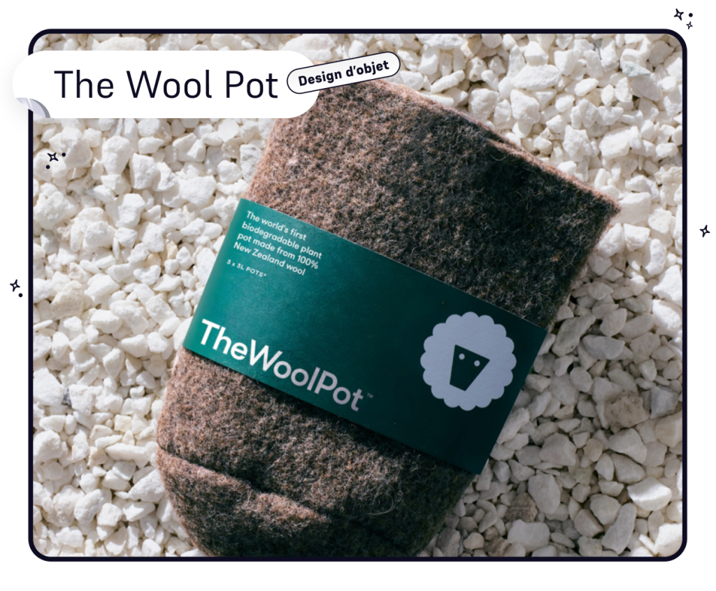 The Wool Pot, c’est un pot de fleur 100% biodégradable, fait en laine de mouton. On salue autant l’objet que le branding tout autour, créé par le studio néo-zélandais Seachange.